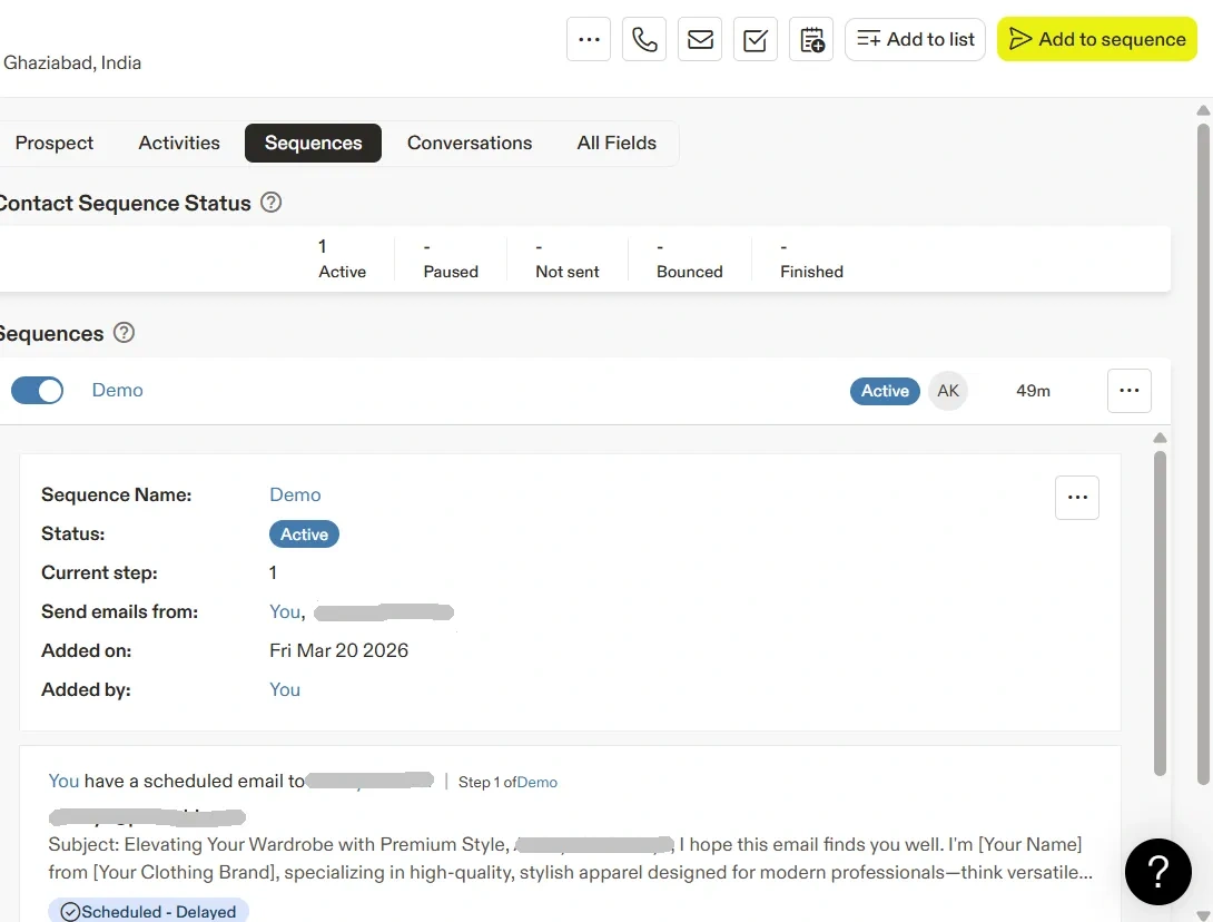 Once the contact is added, it is successfully enrolled in the sequence. After that, activate the sequence to begin the automated workflow.