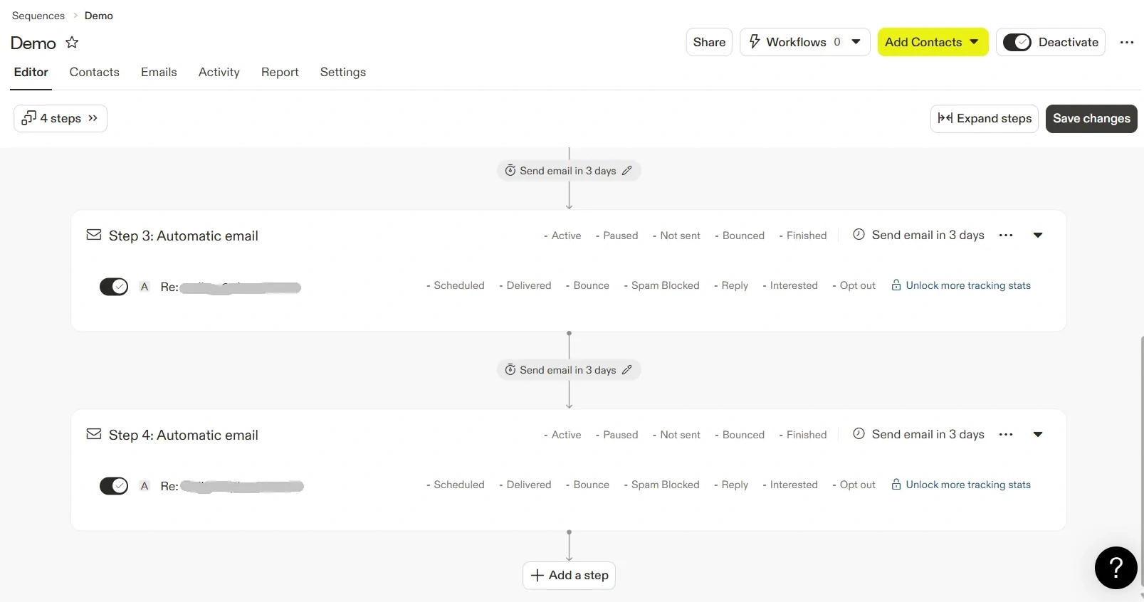 A sequence is a series of steps that run automatically for your contacts.