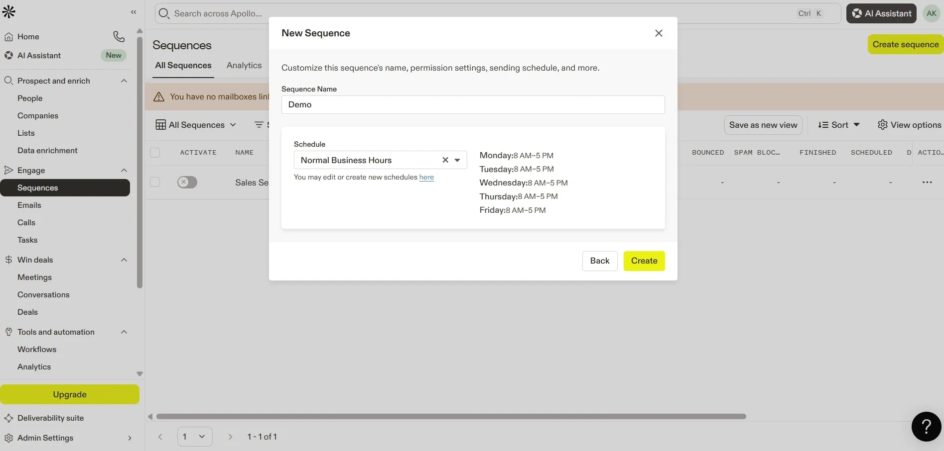 The Sequences tab in Apollo is a handy tool that helps you automate your outreach. Think of it as a way to set up a plan once, and then let Apollo do the work for you. Even if you’re just starting out, you can easily build a sequence by following a few simple steps. With clear planning and straight forward messages, sequences can save you time, keep you organized, and make it easier to connect with prospects. It’s a smart way to boost productivity and engagement without adding extra stress