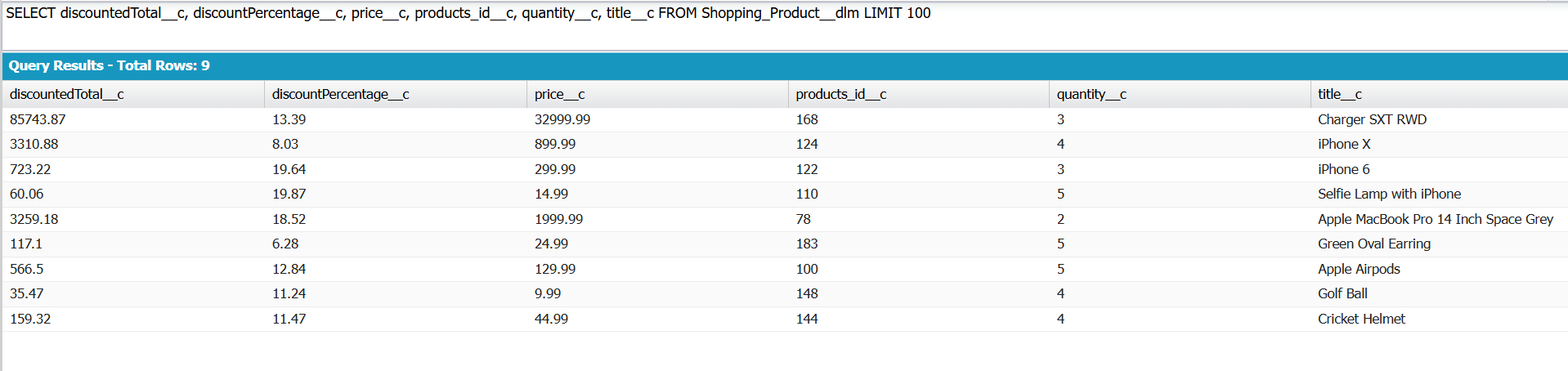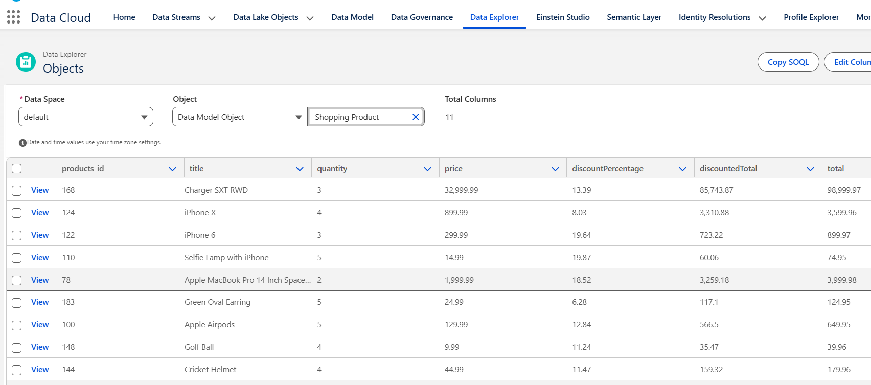 - Let's execute the SOQL query for Shopping Product object