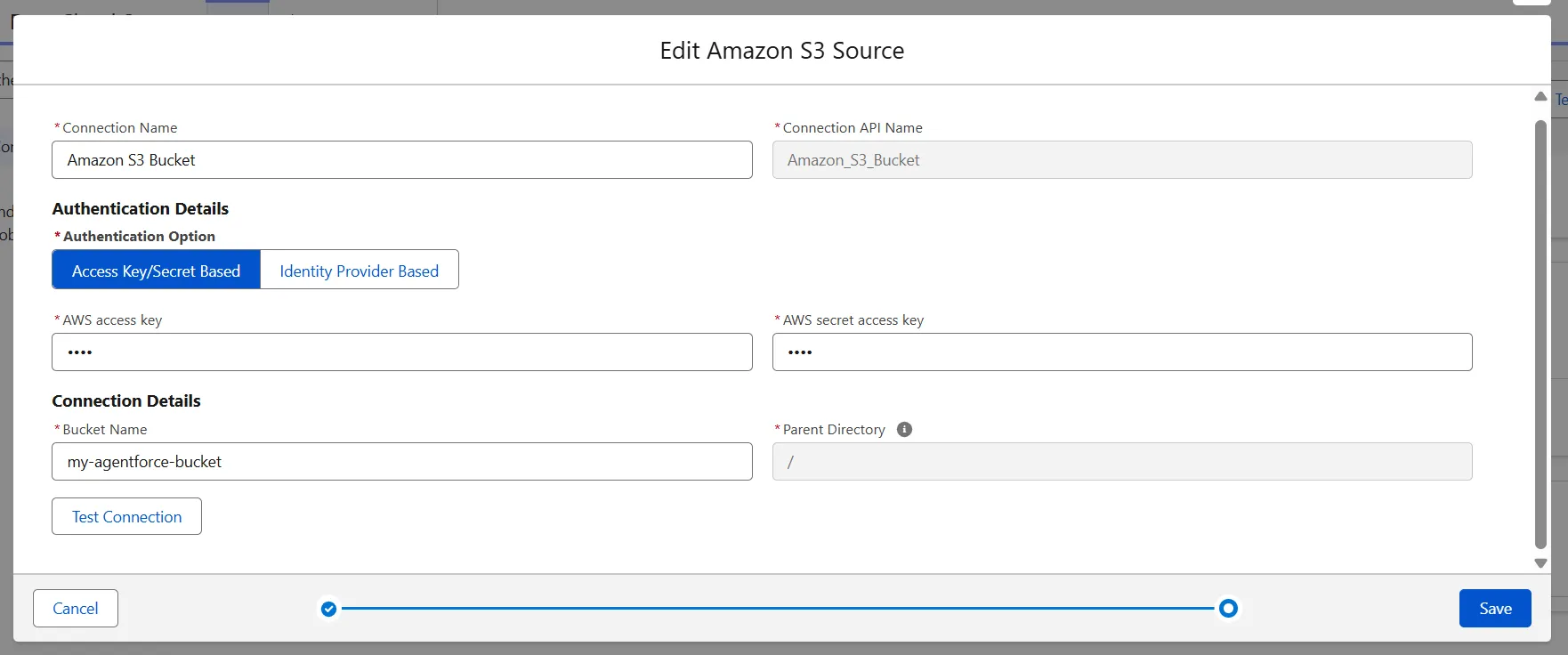 After doing this. You have to create AWS access key and AWS secret access key to connect with salesforce