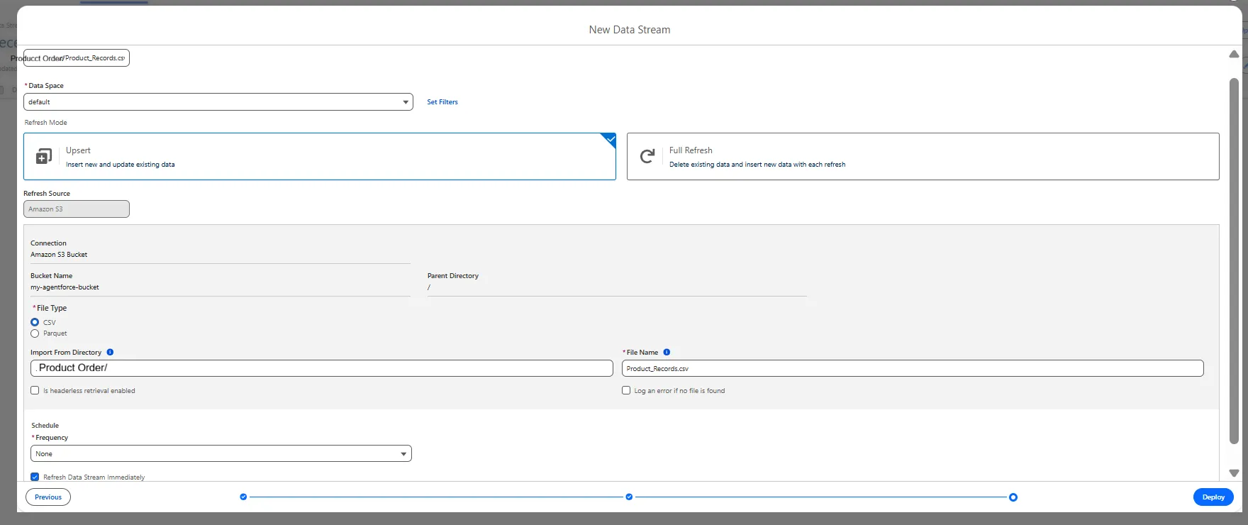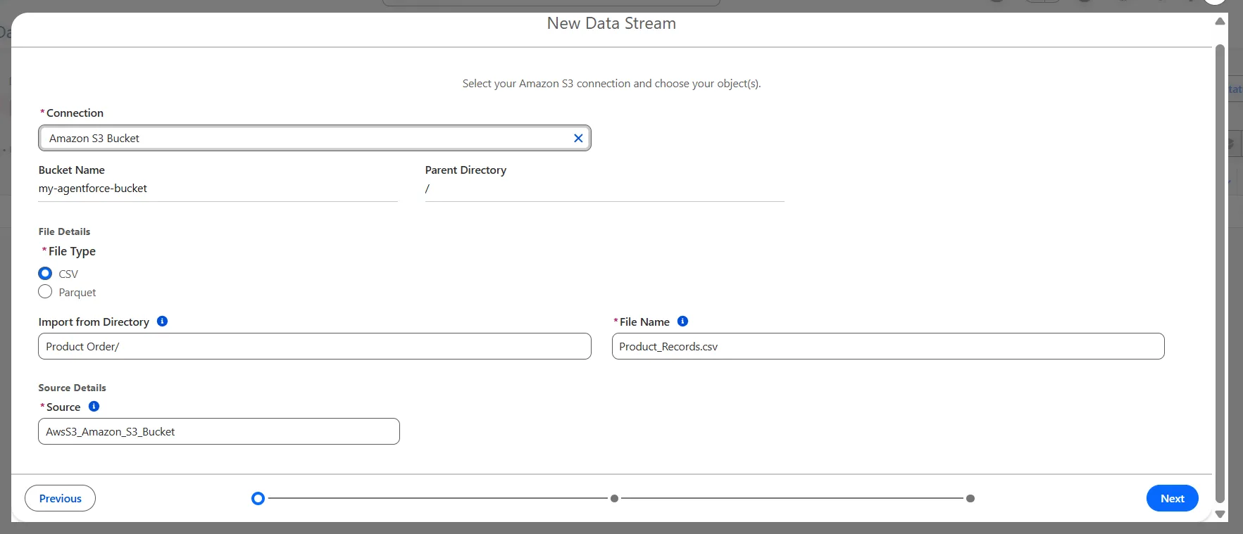 This blog explains how to integrate AWS S3 data with Salesforce Data Cloud to use inside Agentforce agents. This agentforce agent show us data based on customer question, from AWS S3 where csv file is uploaded. Let's start with following steps:
