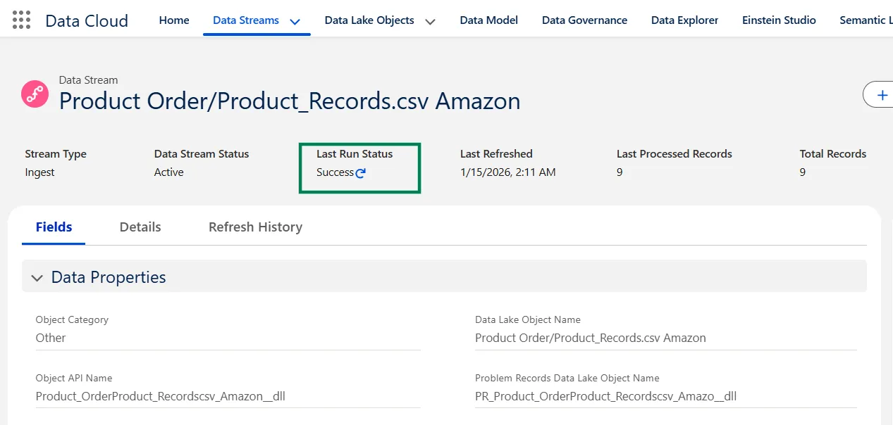 - Go to Data Stream tab in Data Cloud App