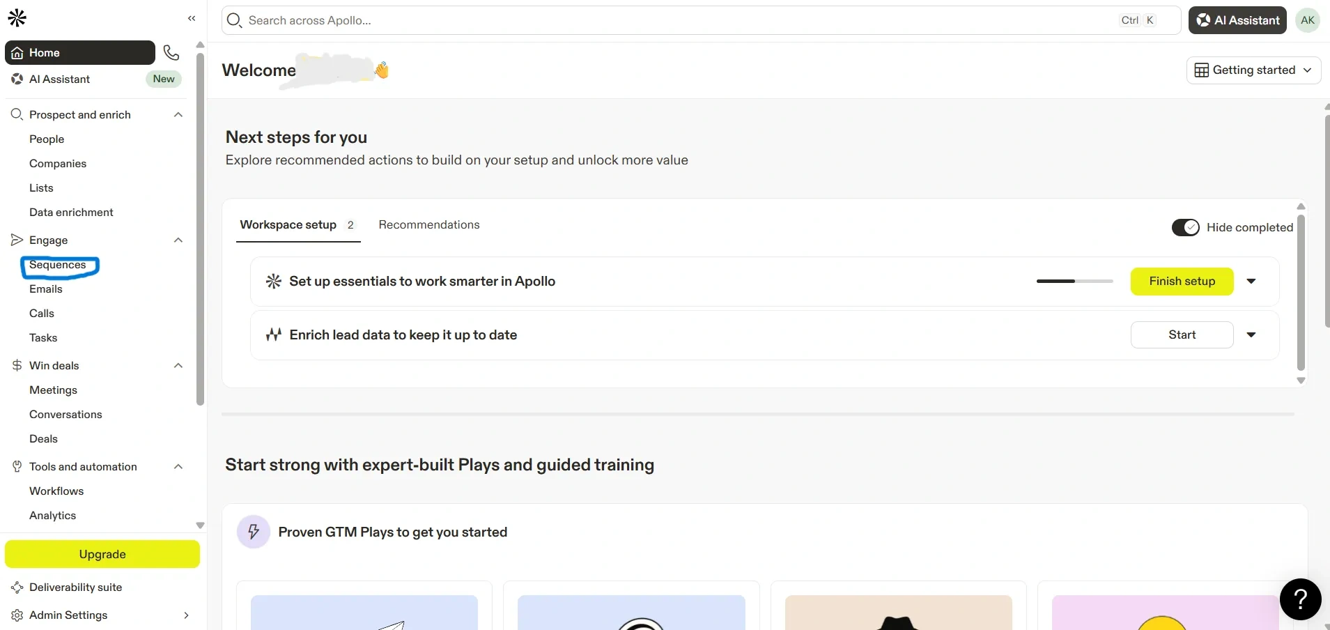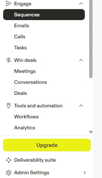 After logging in to the Apollo website, you will see the Sequences tab in the left-side navigation menu of the dashboard. Click on Sequences.
