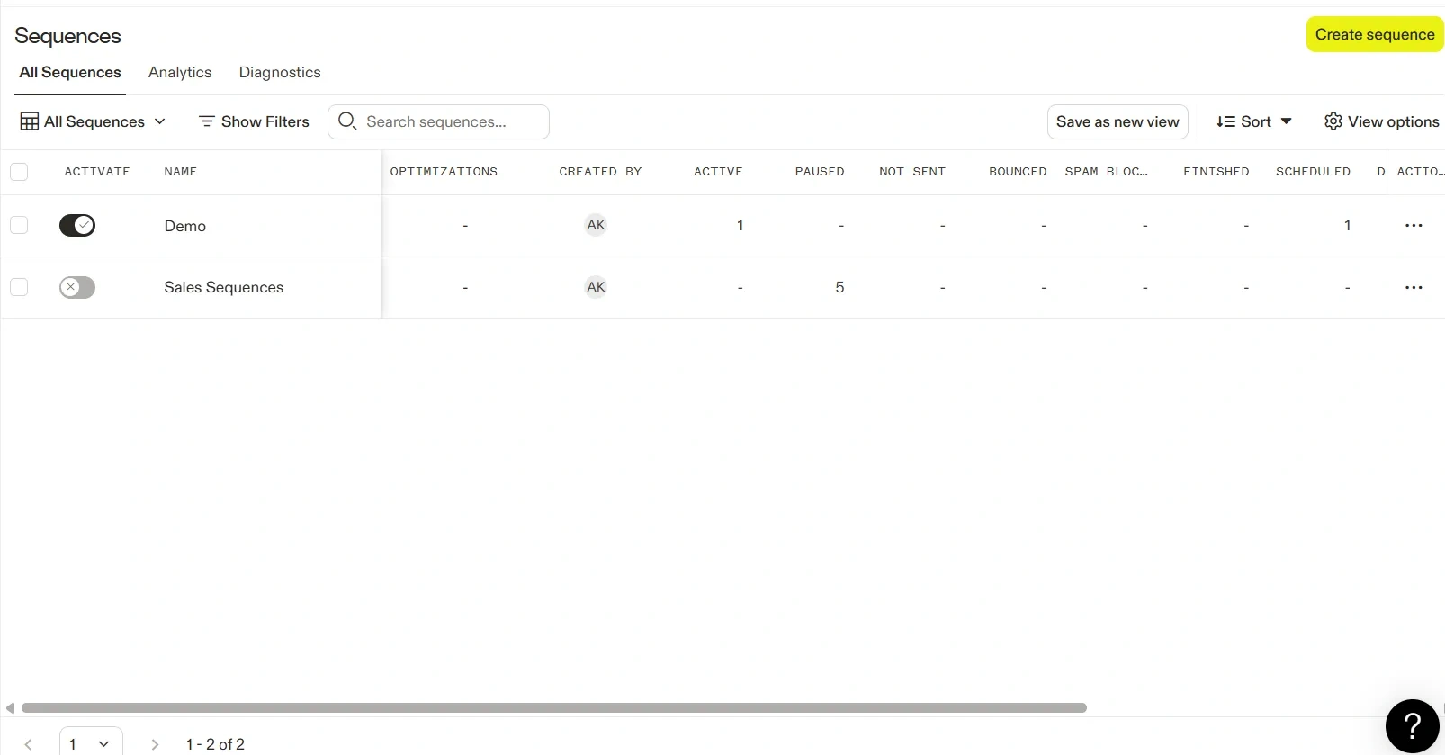 After click on Sequences, This will open the Sequences page, where you can , Create a new sequence, View existing sequences