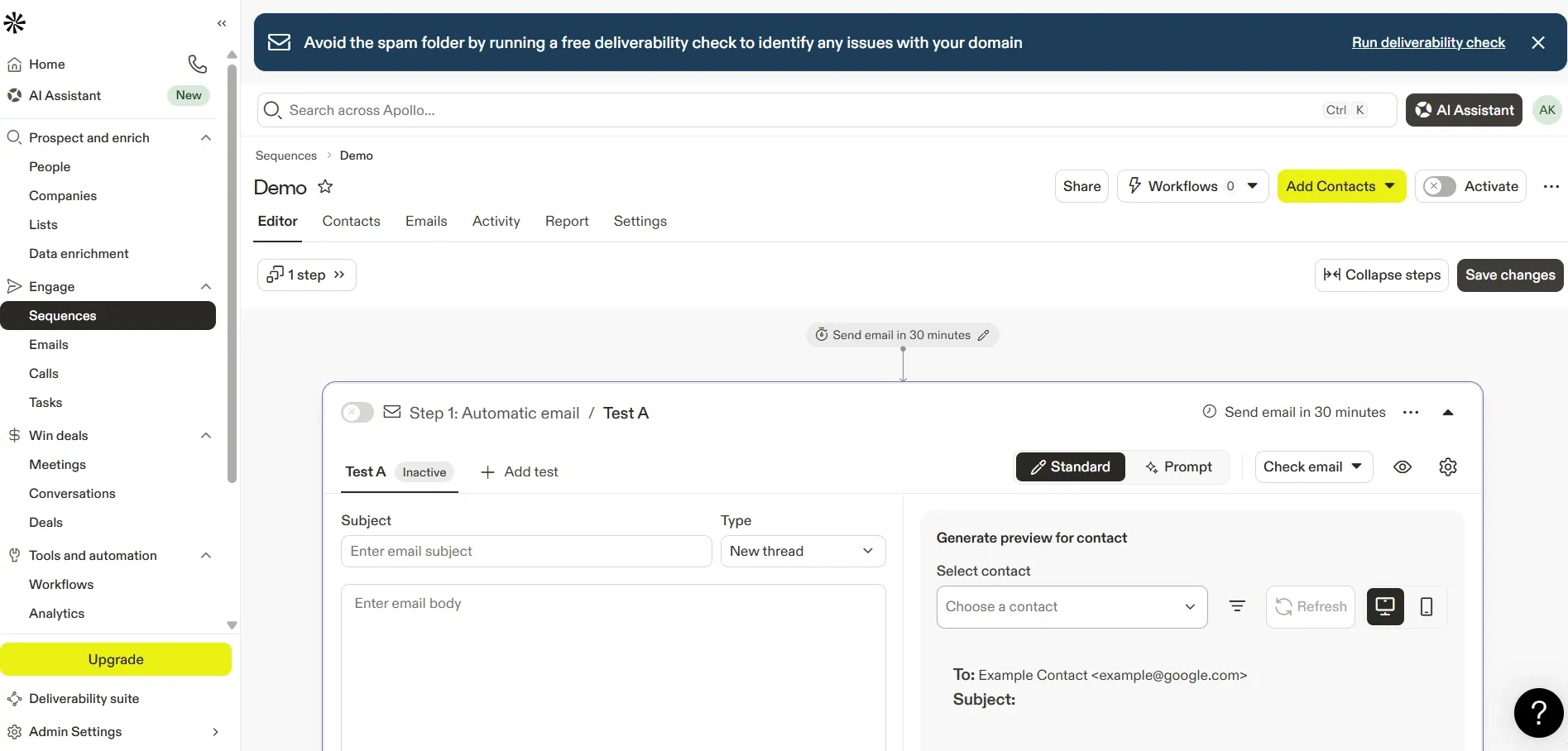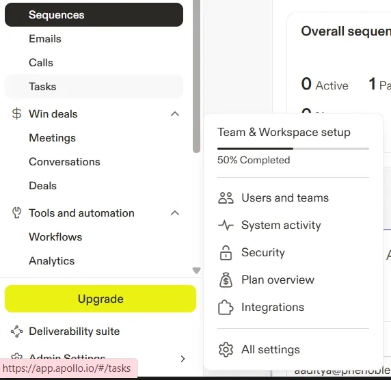 One of the most useful features inside Apollo is the Sequences tab. Think of it like a simple system that runs your outreach for you. It can send emails automatically, remind you to follow up, and keep everything moving without you having to juggle it all manually.