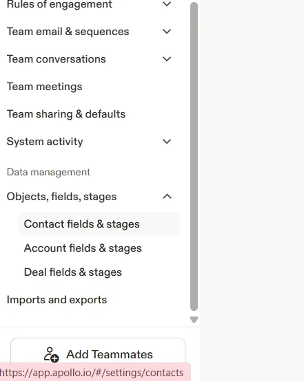 Click on Contact fields & Stages.