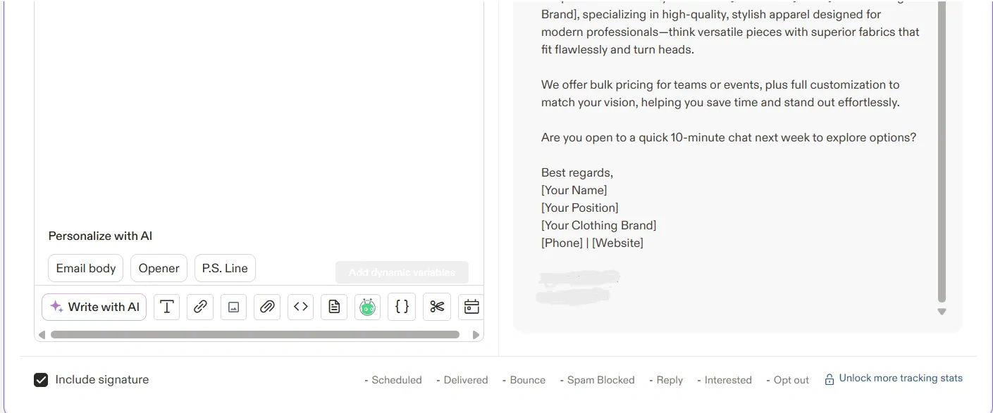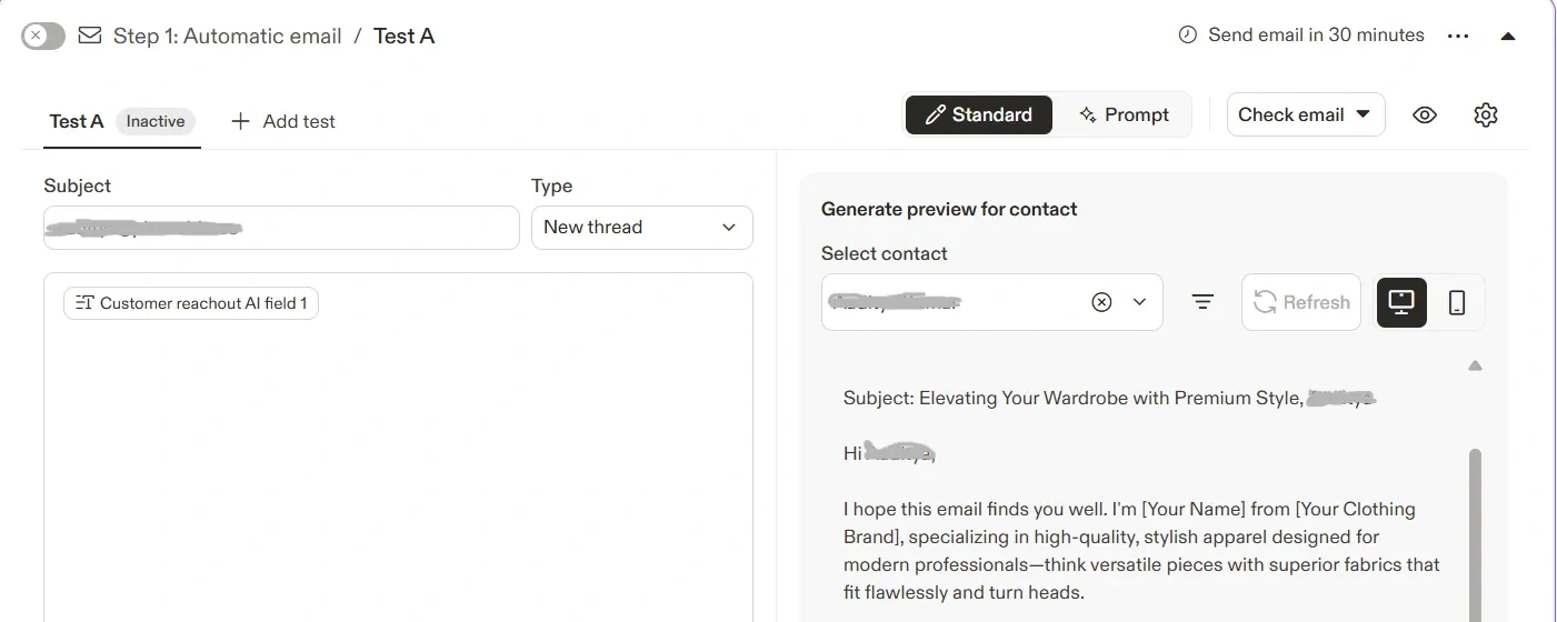 You can also use AI Custom Fields to personalize the email.