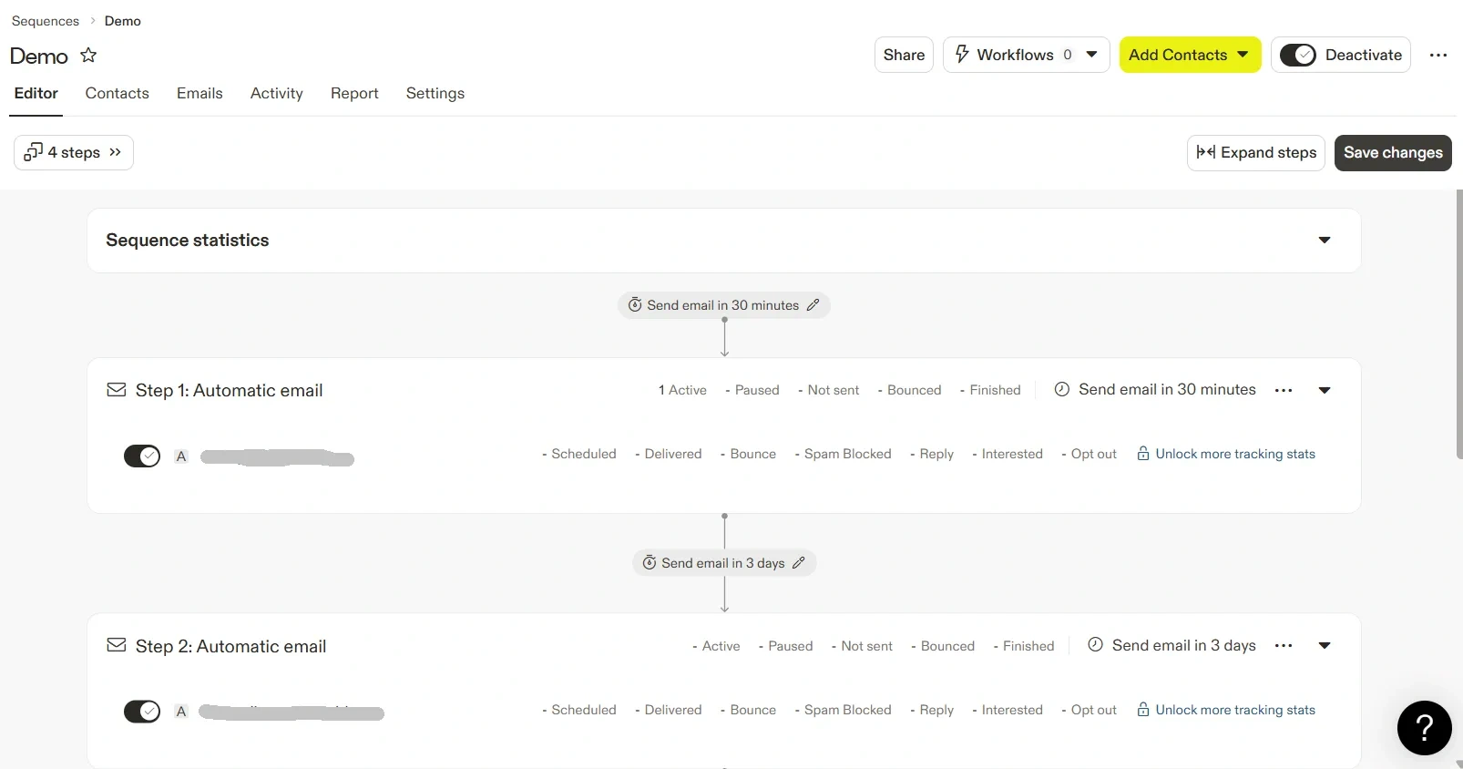 A sequence is a series of steps that run automatically for your contacts.